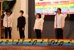 小学部は「にじ」をテーマに、低学年と高学年がそれぞれ日ごろの学習成果をステージで発表しました。