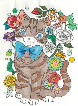 お花を塗るのが難しかったです。ねこの目の色をグラデーションにしました。
