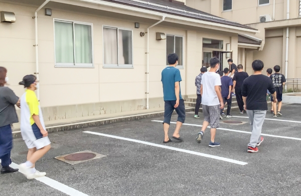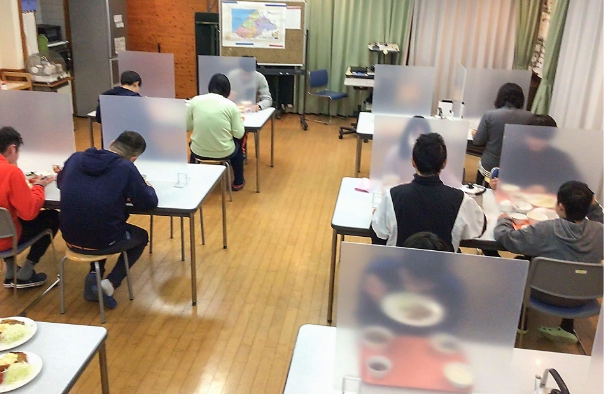 浜田養護学校の寄宿舎では、生活を共にすることで、仲間作りや自立心を育むことができるよう、様々なイベントや活動も行なっています。学校生活とともに一人一人の人間性を育みながら過ごす3年間です。
