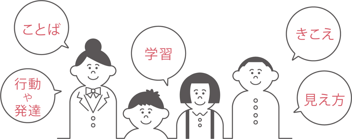 お子さんの見え方、きこえ、ことば、行動や発達、学習など気になることの相談に応じます。