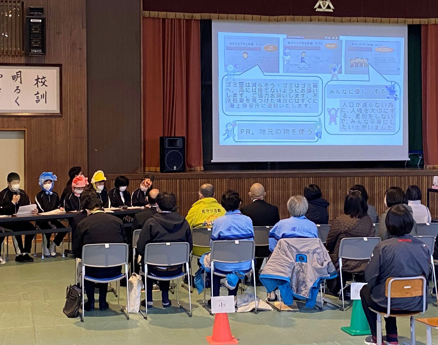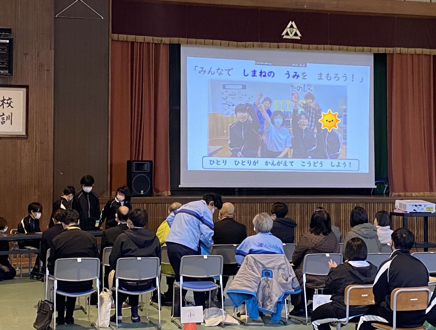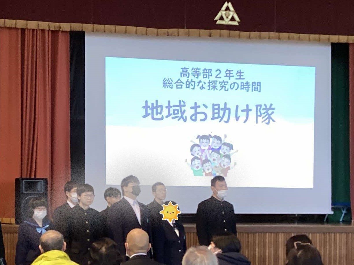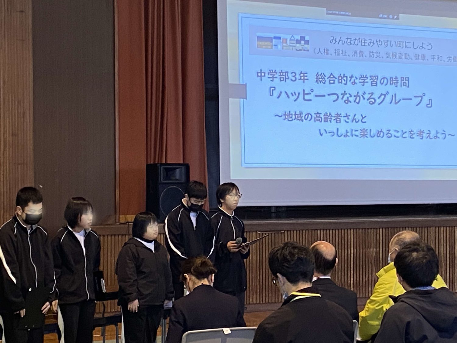 地域との連携協働学習報告会及び交流会を実施しました。小学部5年生以上が地域と連携して学習した成果を地域の方や協力してくださった方々を招いて行いました。ちょっと緊張しながらも、聞いていただけるように丁寧に発表しました。