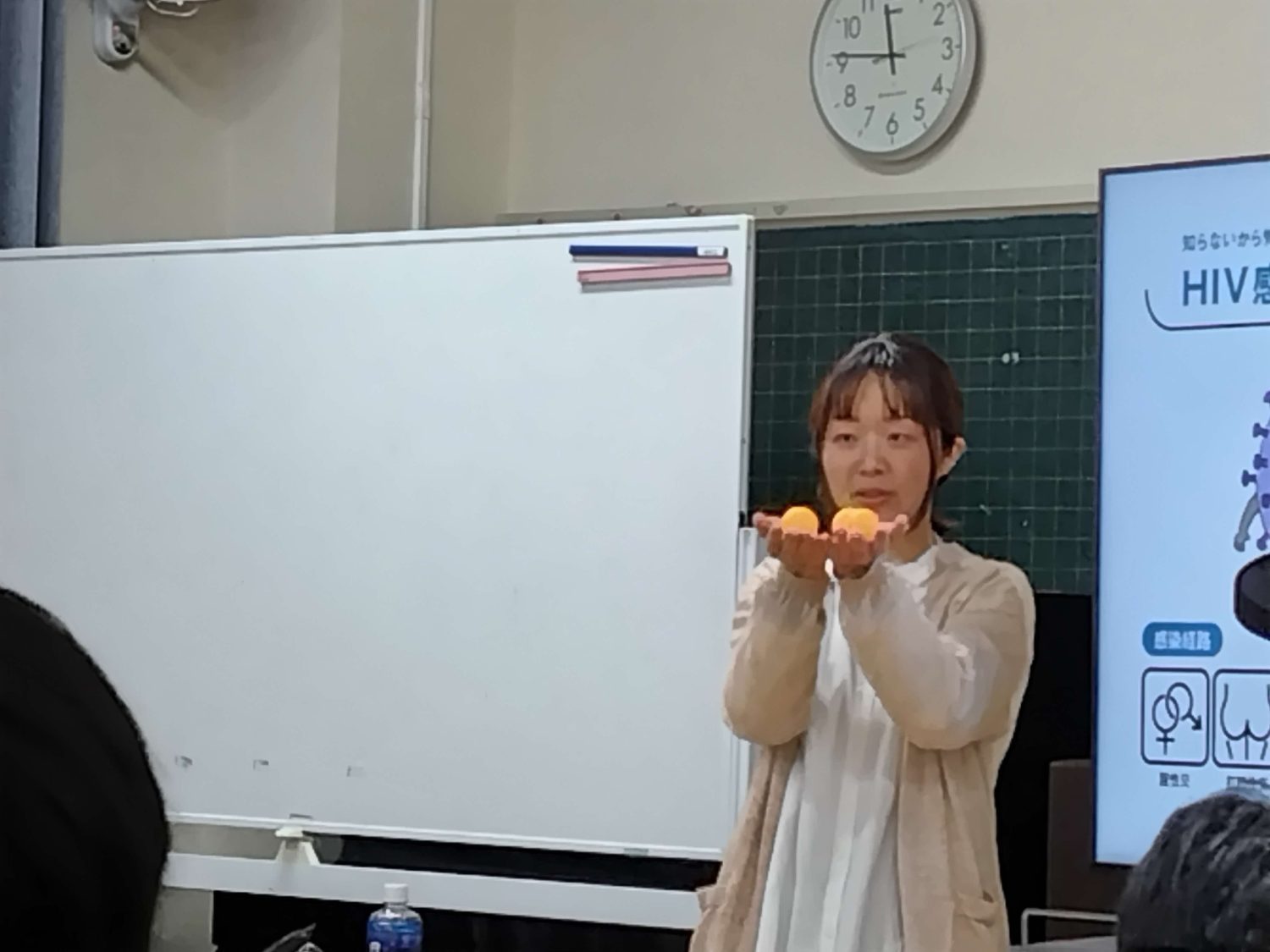 性感染症については、インフルエンザの感染と性の感染の違いを、ピンポン玉を使って説明してくださいました。