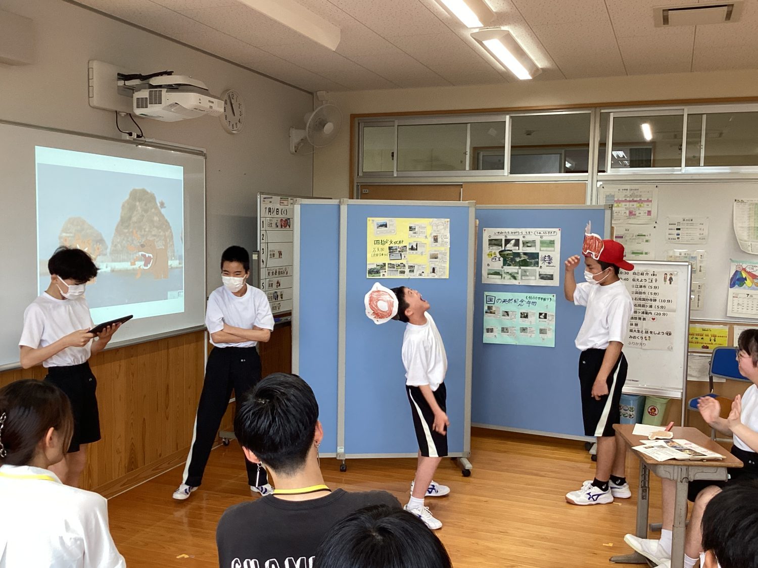 1学期は、浜田市や江津市、石見畳ヶ浦、石見国分寺跡について調べたり、ガイドさんに案内してもらったりして、わかったことや「いいね👍🏻」と思うことを島根県立大学の学生さんに紹介しました。