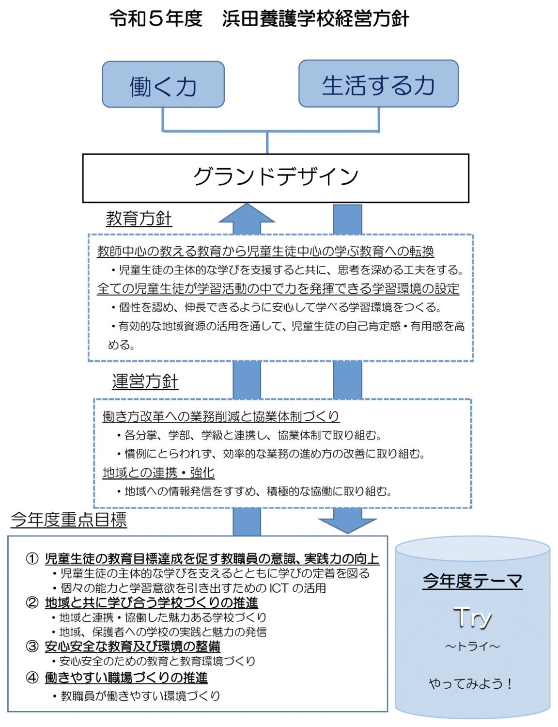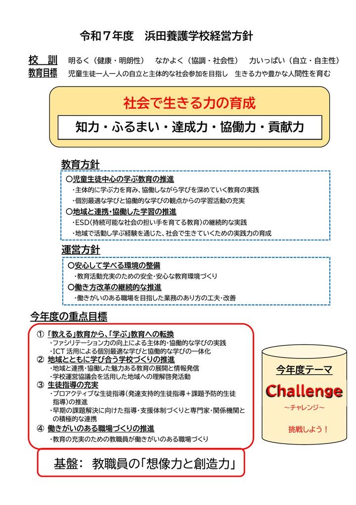 明るく(健康・明朗性)なかよく(協調・社会性)力いっぱい(自立・自主性)